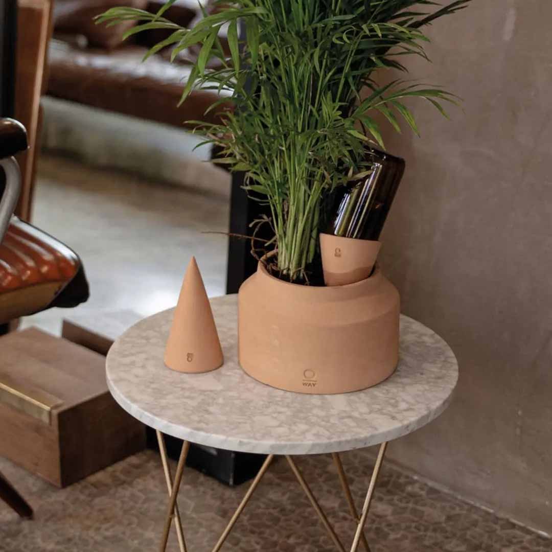Oway Cono er en smuk terracotta vandings-tragt til potteplanter, designet af Oway og lavet lokalt af erfarne italienske keramikere. Den har en ru, materialestruktur og et unikt og originalt design, der integreres smukt i enhver indretningsstil..